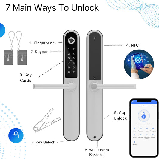 Origin Smart Keyless Door Handle for Home Security, App Control, Key Card, Remote Lock/Unlock (Satin Chrome)